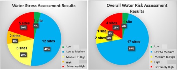 The assessment results of water stress indicates that five sites (each one site in USA, China and Thailand and two sites in Tunisia) were rated as extremely high risks, and one site (in England) were rated as high risks. The amount of water intake by six sites assessed as extremely high and high risks accounts for 33.36% of the total of IDEC group's water intake. (FY2025 data) As for other risks, there are physical risks, groundwater table declines, seasonal variability, drought, riverline floods, and coastal floods, etc. We schedule to conduct risk assessments using Aqueduct once a year, and results will be updated. | ![]() Resource: World Resources Institute "Aqueduct Water Risk Atlas" |