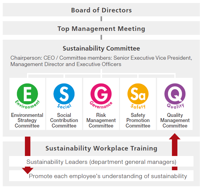 Going forward, we will continue taking action under the Basic Sustainability Policy to resolve global issues through our business activities, with the ultimate aim of realizing a sustainable society. Our efforts include 1) advancing the safety, health, and well-being of all people through our participation in and support for the Vision Zero campaign led by the International Social Security Association (ISSA) under the International Labour Organization (ILO); 2) remaining attentive to climate change and other global environmental issues; and 3) preparing to respond to future risks and opportunities.